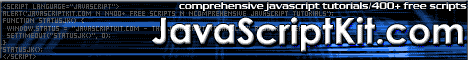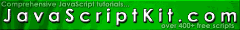 Linking to JavaScript Kit. Many people have asked how they can link to this site. You can do so with any one of the below images. Thanks to Feyd for contributing most of the images you see below. Note: Please download these buttons first (by right clicking desired image and selecting "Save Picture as"), and uploading to your server. Small Logos: Standard size banners: To get the images, simply right click your mouse, and choose "save as". Please link it to http://www.javascriptkit.com Text link: JavaScript Kit- Comprehensive JavaScript tutorials and over 400+ free scripts. Thanks for the link! |