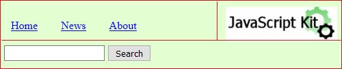 <!-- Base HTML --> <header class="topheader"> <nav class="left"> <a href="#">Home</a> <a href="#">News</a> <a href="#">About</a> </nav> <form> <input type="text" /> <input type="submit" value="Search" /> </form> </header>