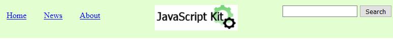 <!-- HTML: Flex container with 3 flex items --> <header class="topheader"> <nav class="left"> <a href="#">Home</a> <a href="#">News</a> <a href="#">About</a> </nav> <a href="#"><img src="jklogosmall.gif" /></a> <form> <input type="text" /> <input type="submit" value="Search" /> </form> </header>